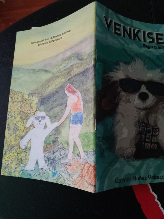 Acuarela y collage, pintura original sobre papel de acuarela Arches Grain Torchon 300g/m². Adición mediante collage de dibujos del perro Venkisen y su amiga Adara. Un encargo de mi amigo Galmar Núñez Velasco, músico, rockero y explorador sonoro. Basado en una fotografía de un paisaje de San José del Pacífico, Oaxaca, México.