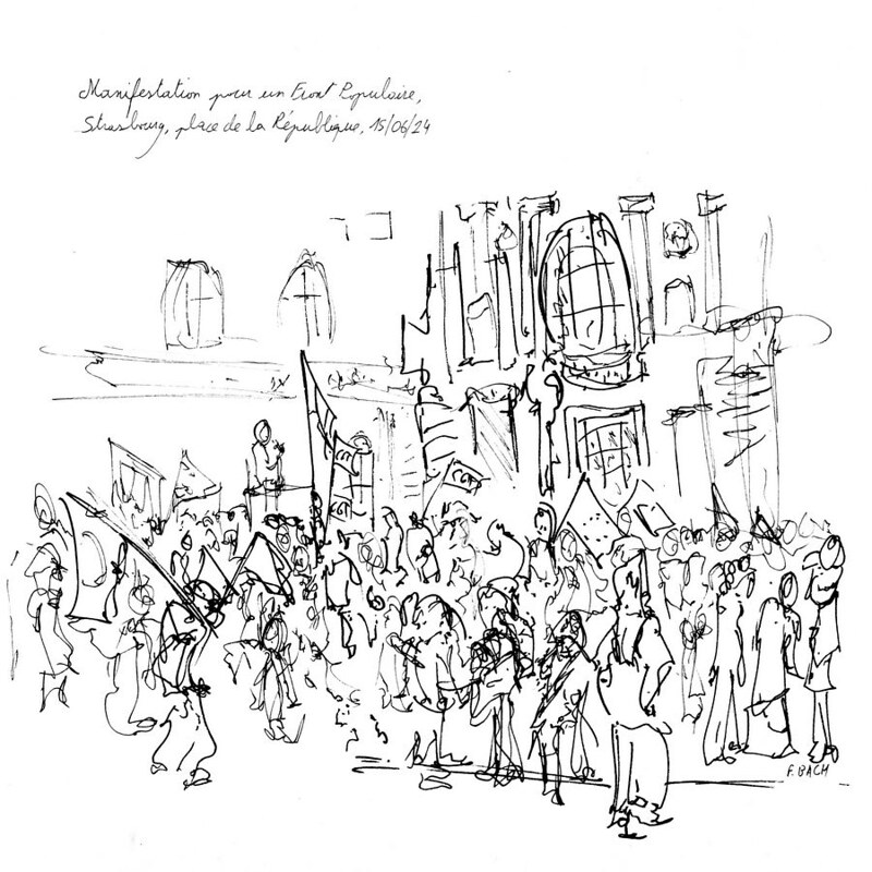 En cette période d’actualité politique intense, je reprends les dessins de manifestations.