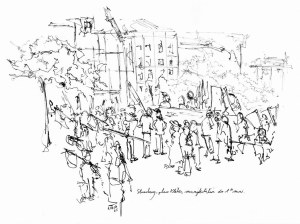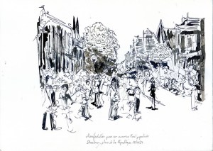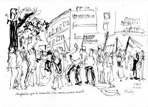 Une exposition de Frédéric Bach à la médiathèque Olympe de Gouges, suivie d’une rencontre le 29 novembre - Croquis de manifestation du 1er mai